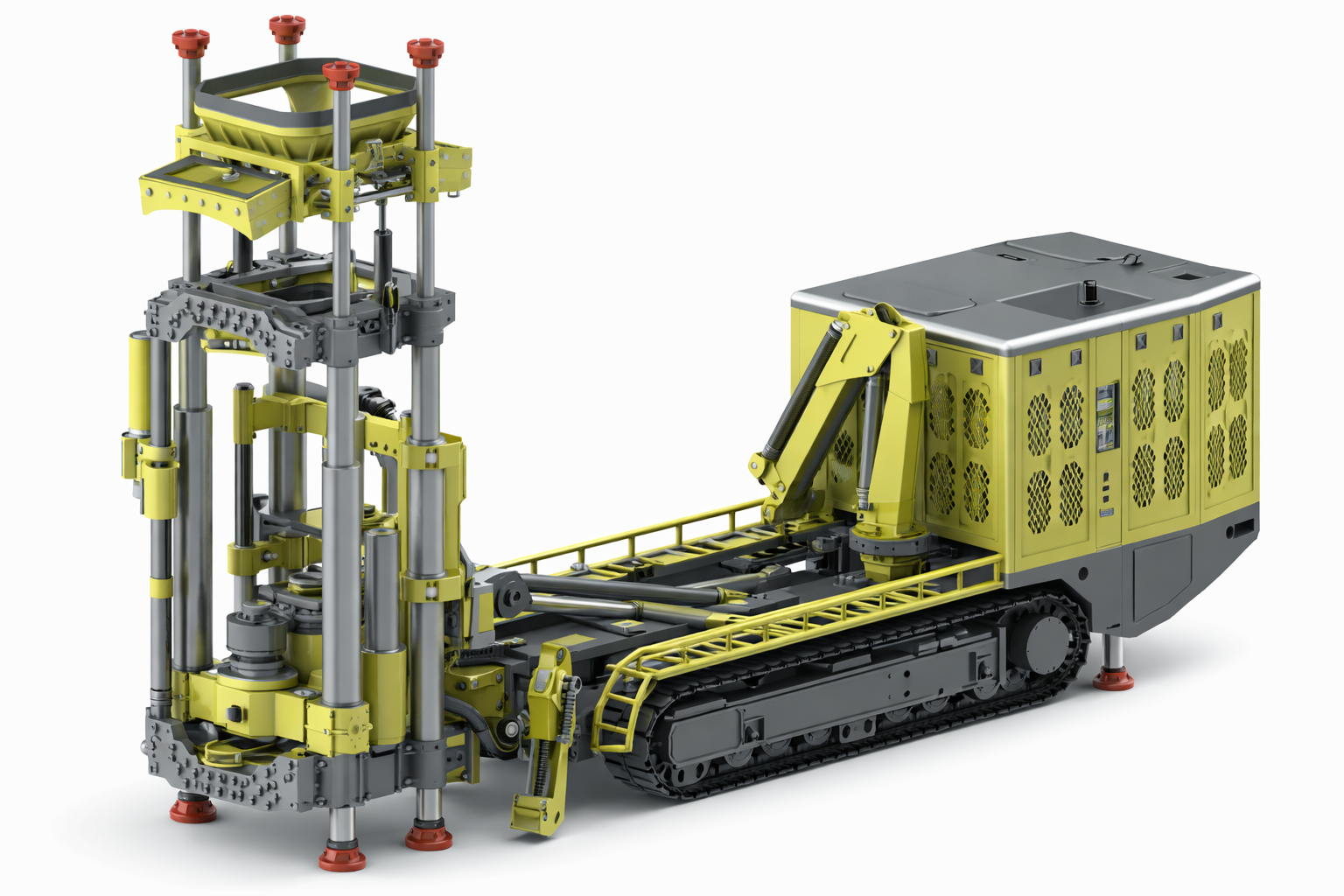 Установка оборудована системой автоматического центрирования, которая позволяет точно выставлять точку забуривания регулировкой буровой рамы — без необходимости перемещать станок на гусеницах.